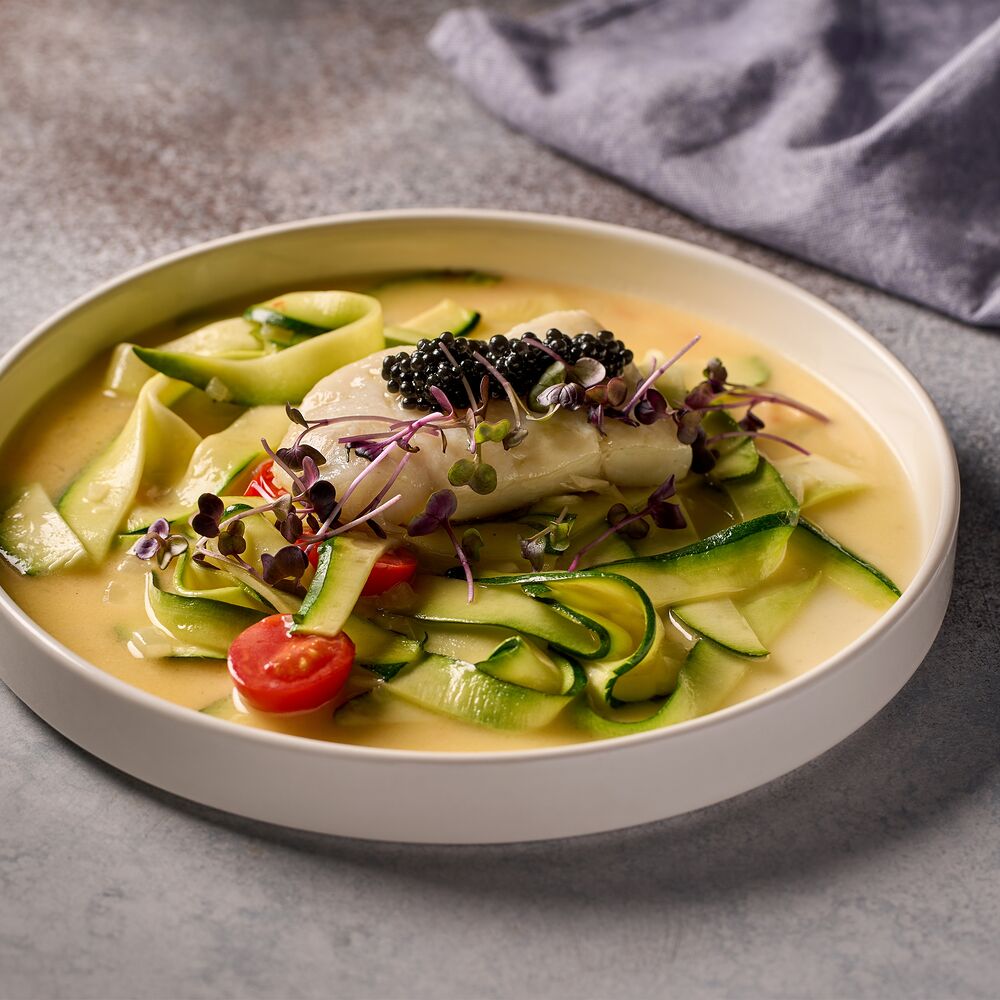 Филе палтуса с паппарделле из цукини